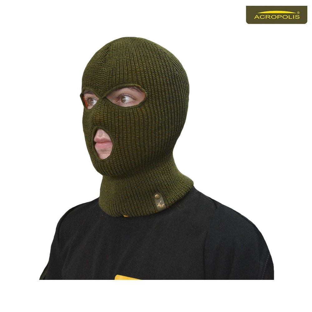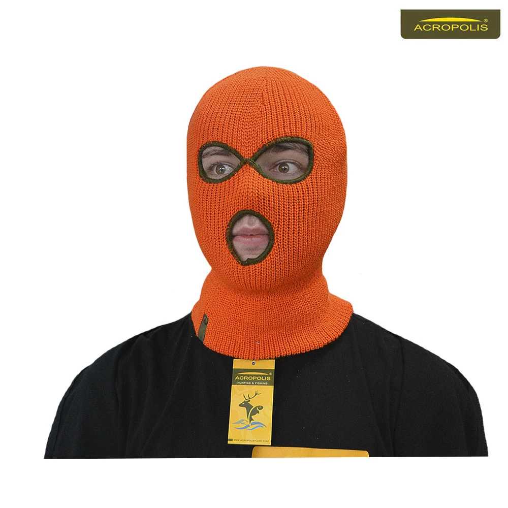 Універсальна двостороння зимова балаклава з трьома отворами. Продається для мисливців та рибаків. Одна сторона кольору олива, інша – оранжева («сигнальна»). Практичний головний убір українського виробництва. Еластичний, «дихаючий», водовідштовхуючий поліакрил зручно носити протягом тривалого часу. Добре відштовхує бруд та вологу, береже голову та шию від переохолодження зимою. Характеризується високим ступенем водовідведення та показником теплоізоляції на рівні шерсті. Захищає голову, шию, обличчя від морозу та вітру при низькій активності чи малорухливості в холодну і сиру погоду. Виріб легко переться (рекомендовано при температурі 30 градусів) та швидко сохне.