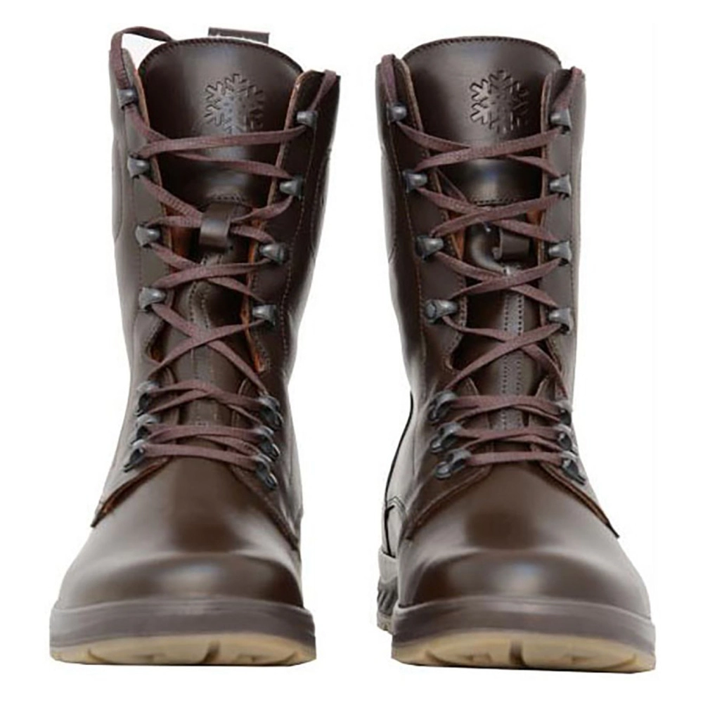 Натуральна овчина спеціальної взуттєвої обробки відмінно зберігає тепло і забезпечує максимальний комфорт. Конструкція черевиків зберігає від попадання снігу і дощу в середину. Спеціально водовідштовхувальна двошарова шкіра. Двошарова підошва: ПУ - м'який, пластичний поліуритан, з максимальною теплопровідністю. ТПУ - термопластичний матеріал. Стійкий до нафтопродуктів. Має хороше зчеплення з ґрунтом і з льодом.