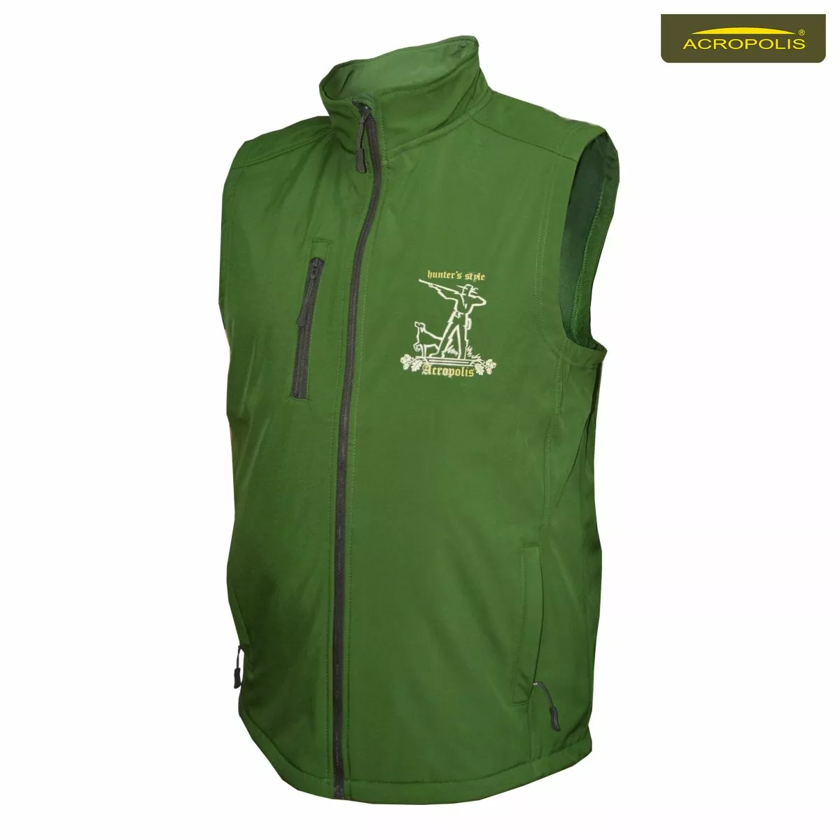 Практична зелена безрукавка для літа, пізньої весни або ранньої осені. Зверху легкий матеріал, а з зсередини байкова підкладка. Так, щоб чоловікові було тепло, але не гаряче. Часто носять поверх светрів, джемперів або гольфів, якщо на вулиці комфортна (не холодна і не жарка погода). Відсутність рукавів робить вас мобільнішим, високий комір не лише не пропускає вітер, але й захищає від комах.