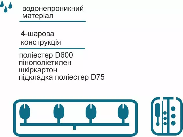 Матеріал: водонепроникний поліестер D600, пінополіетилен, шкіркартон, підкладка поліестер D75.