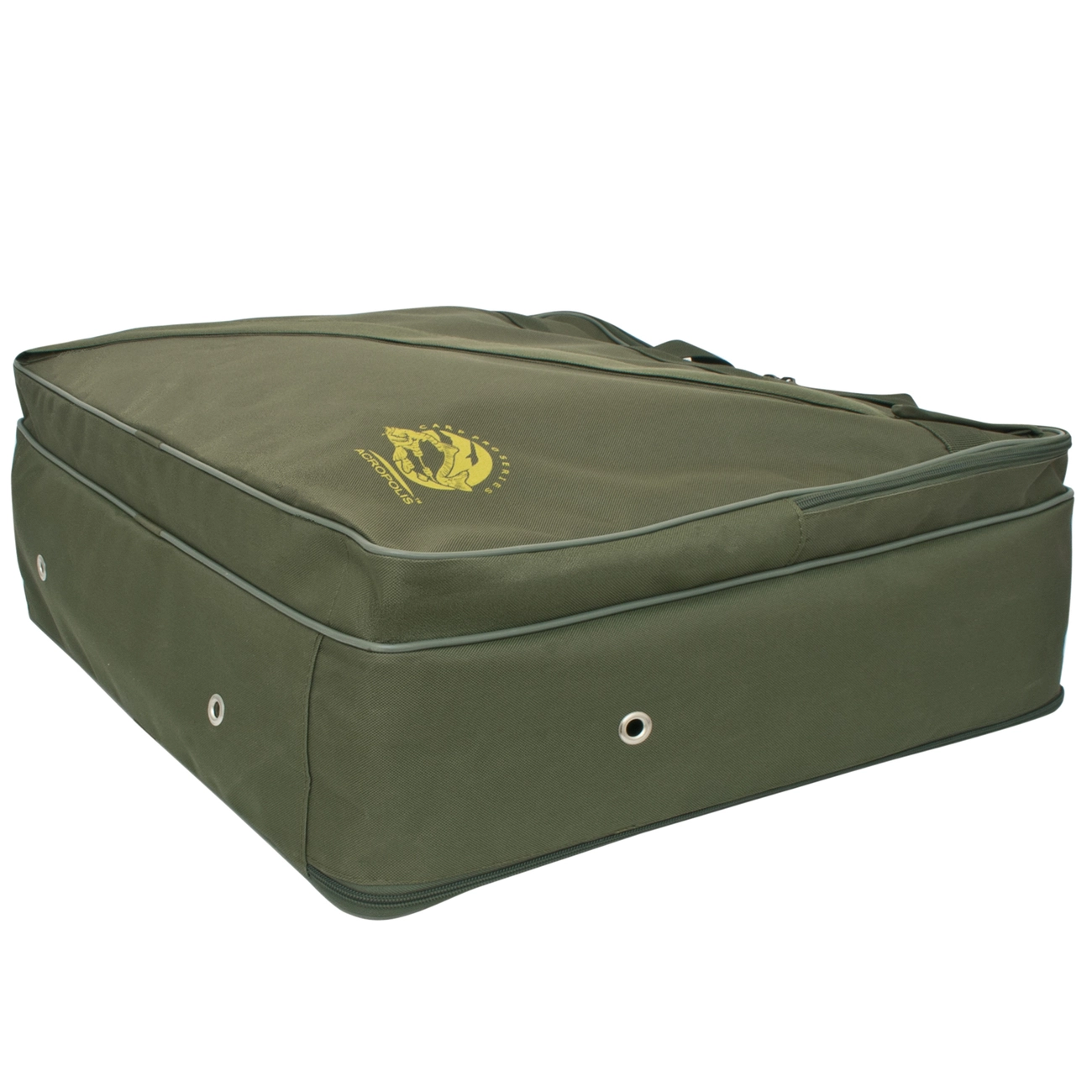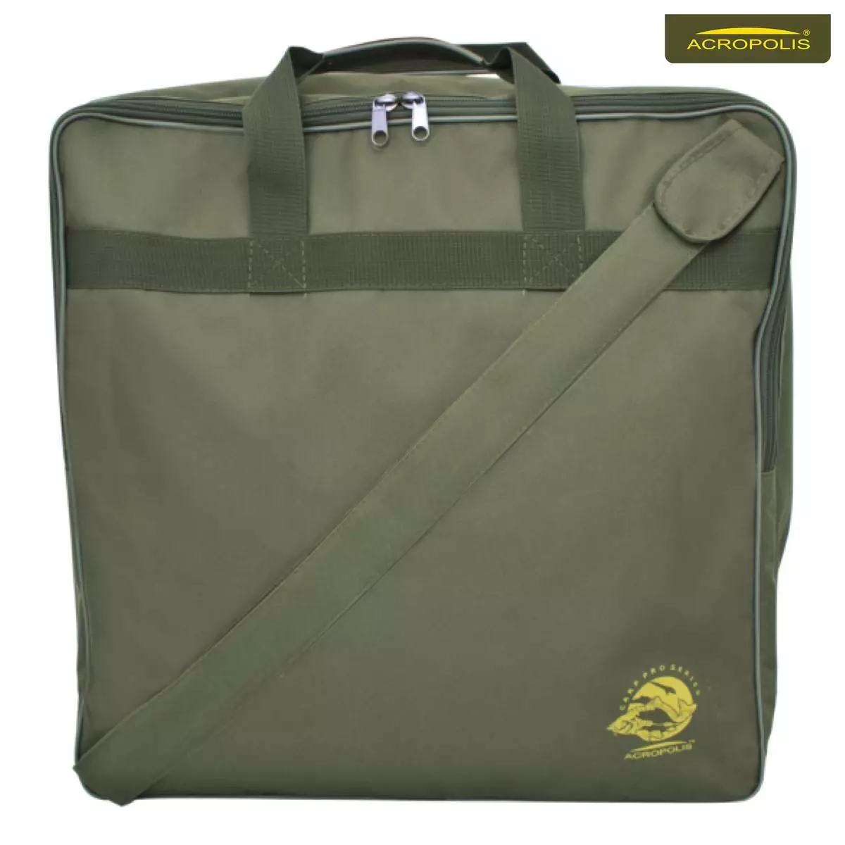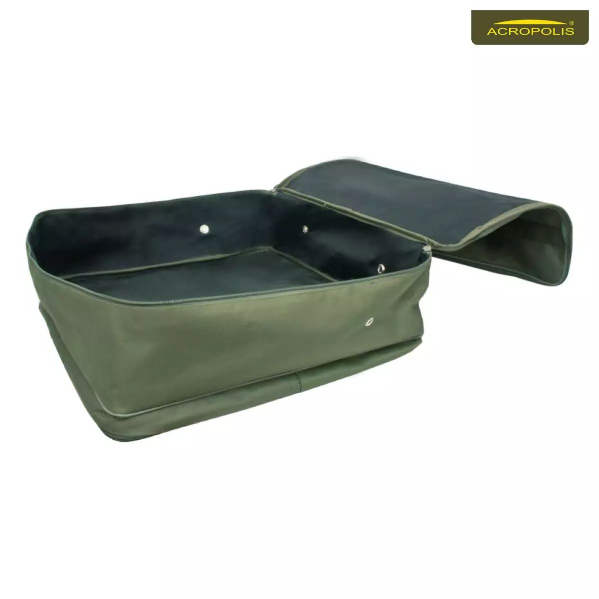 Рибальський чохол для прямокутного садка Acropolis ЧДС-3. Має основне відділення для садка (з отворами для вентилювання) і додаткове для відер та інших аксесуарів. Також є окрема кишеня для стійки. Завдяки двом водонепроникним матеріалами (матеріалу верху і підкладкової тканини) збільшена надійність і довговічність.