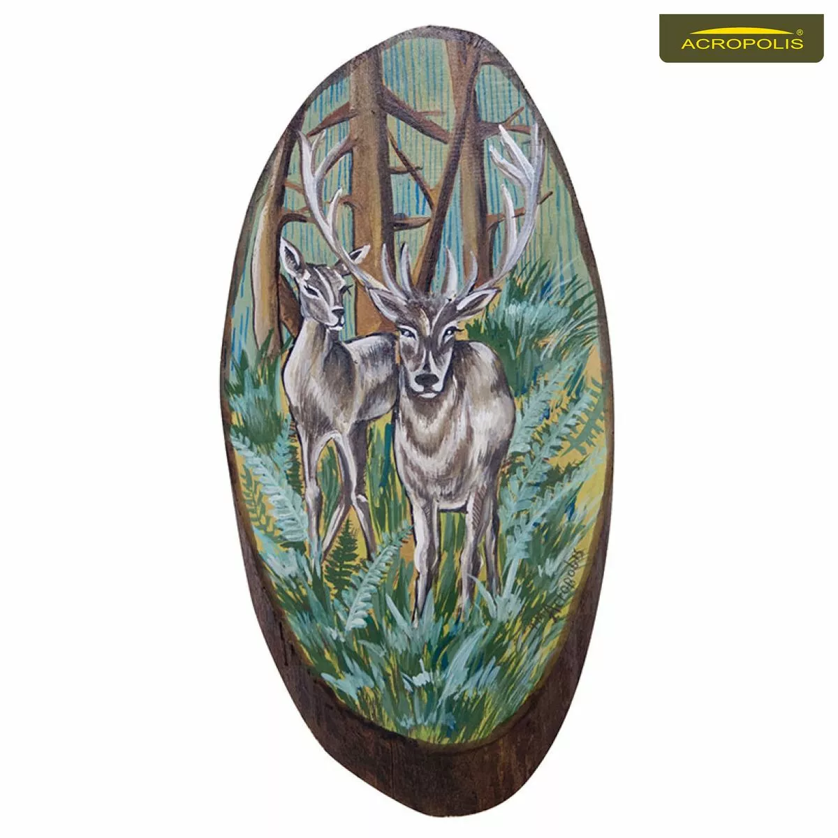 Ручний розпис маслом по натуральному дереву на мисливську тематику - „Олені”.