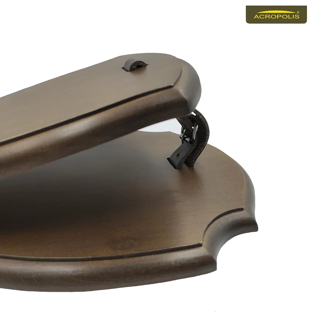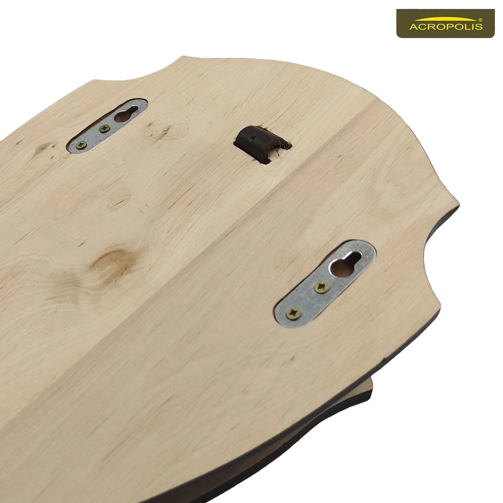 дерево (липа/вільха), натуральна шкіра, металева пряжка.