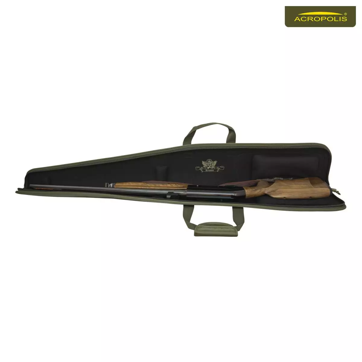 Жорсткий футляр для гладкоствольної зброї має ремінь та м’який наплічник з прорезиненого матеріалу, який перешкоджає ковзанню. До мисливського кофру ремінь кріпиться за допомогою карабінів і півкілець. Місця з'єднання додатково укріплені хольнітенами (заклепками). Кишеня для аксесуарів жорсткої конструкції виготовлена методом термотиснення. Футляр для мисливця оснащений зручною ручкою для транспортування. Ручка футляру з м’якою накладкою. Для фіксації зброї в середині футляру розміщені три ущільнюючі подушки.