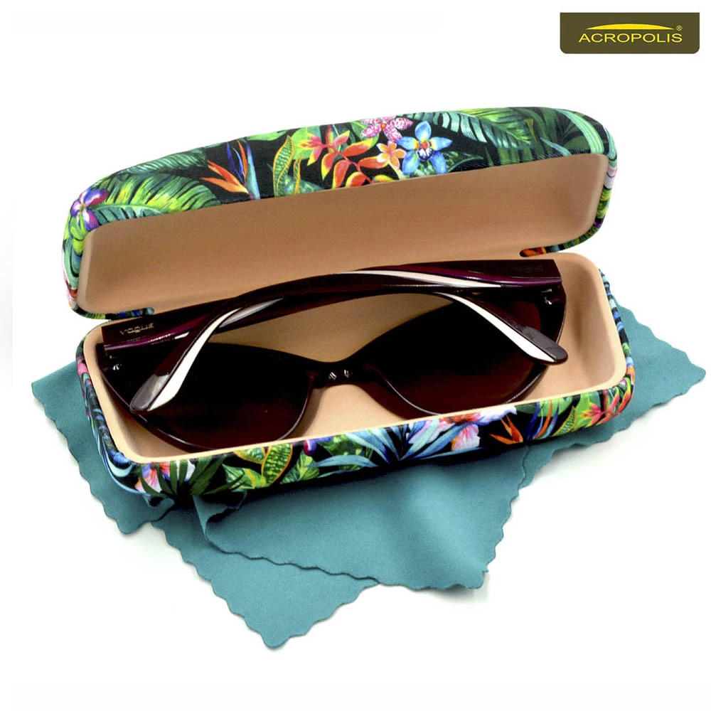 сонцезахисних окулярів з тропічними принтами зелені та квітів.