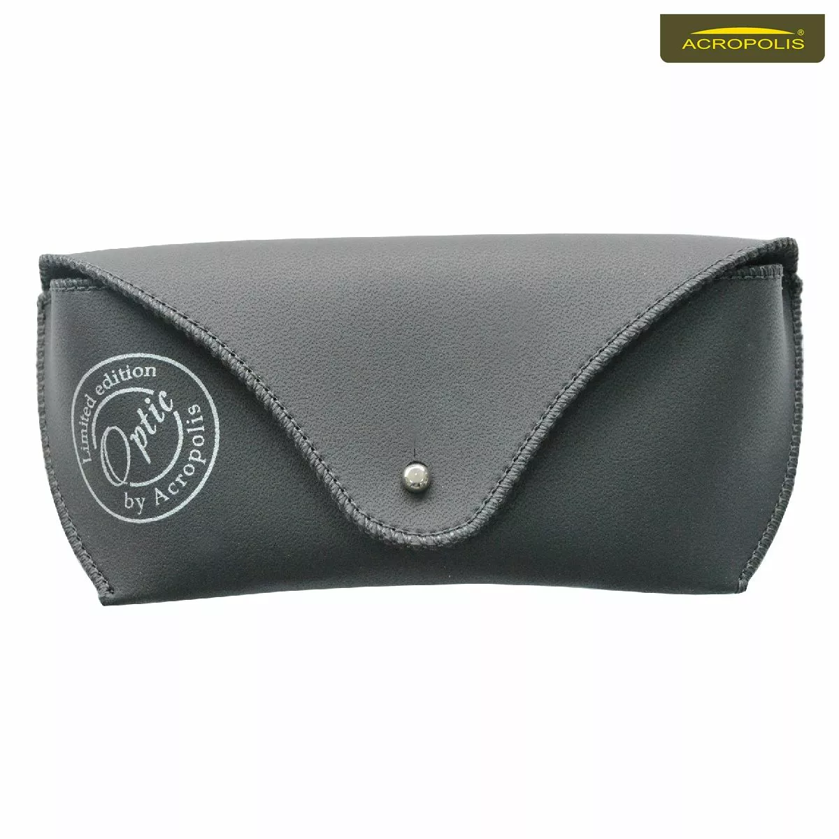 Чохол для окулярів з впізнаваним дизайном з якісного шкірозамінника та оксамитової підкладки. Повністю прошитий. Призначений для зберігання та переносу окулярів. Закривається верхнім клапаном на кубурну кнопку. Колір виробу – чорний. Гарантія – 12 місяців.