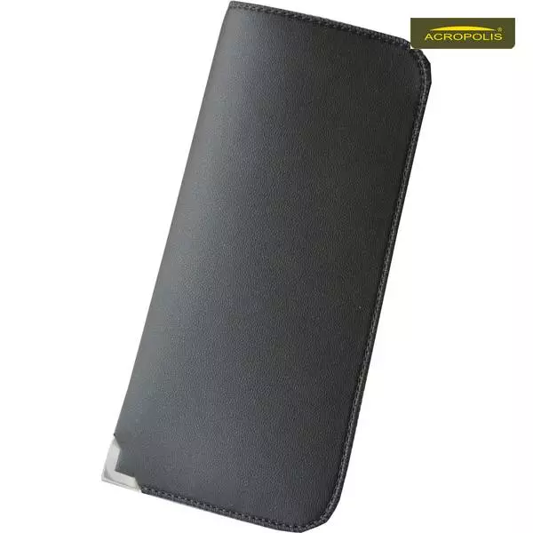 М’який захисний чохол для коригуючих окулярів стандартного розміру. Виготовлений з шкірзамінника чорного кольору. Прошитий по периметру чорною ниткою. В лівому нижньому куті стильний металевий кутик. Чохол – якісний, має річну гарантію. Ціна – бюджетна.