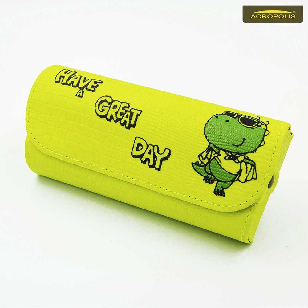 Салатовий та оранжевий футляр для дитячих окулярів з принтом