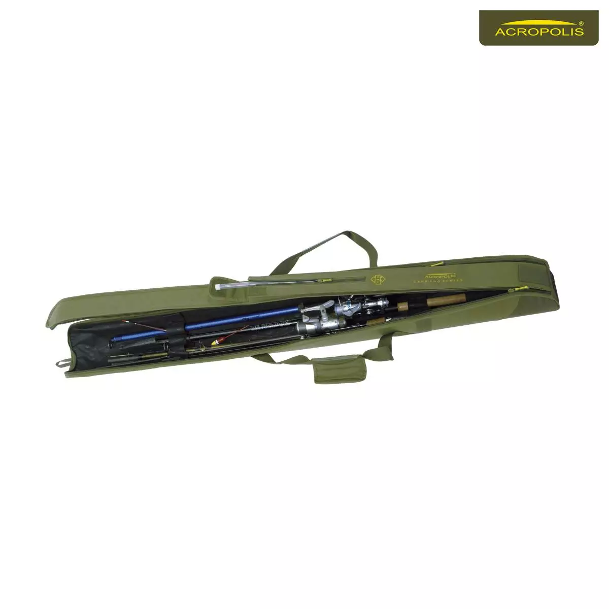 на 3 спінінга і 2 вудки з котушками. Має окрему секцію для