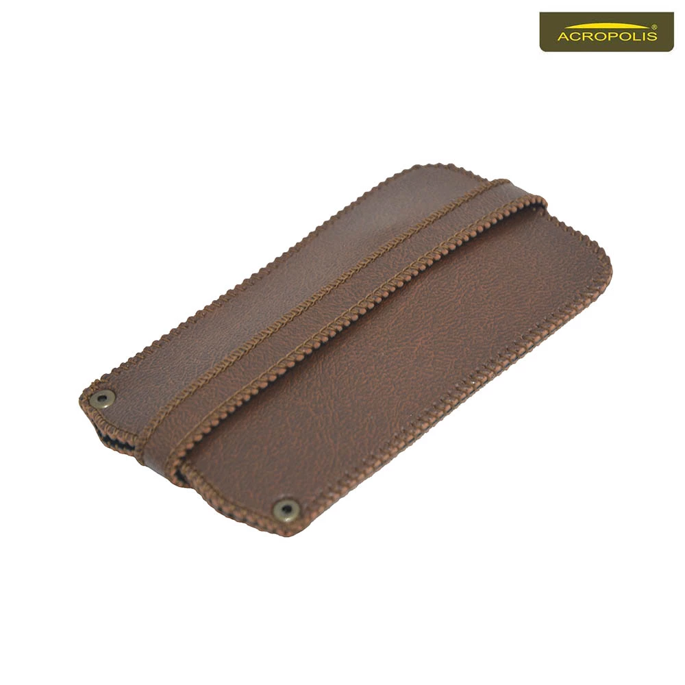 Чохол для ключів Акрополіс КЛ-1зг виготовлений з якісної штучної шкіри, прошитий та оснащений металевою кнопкою і заводним кільцем. Ключі кріпляться до кільця на ремінці та поміщаються в середину футляру. Кнопка надійно фіксує їх в такому положенні.