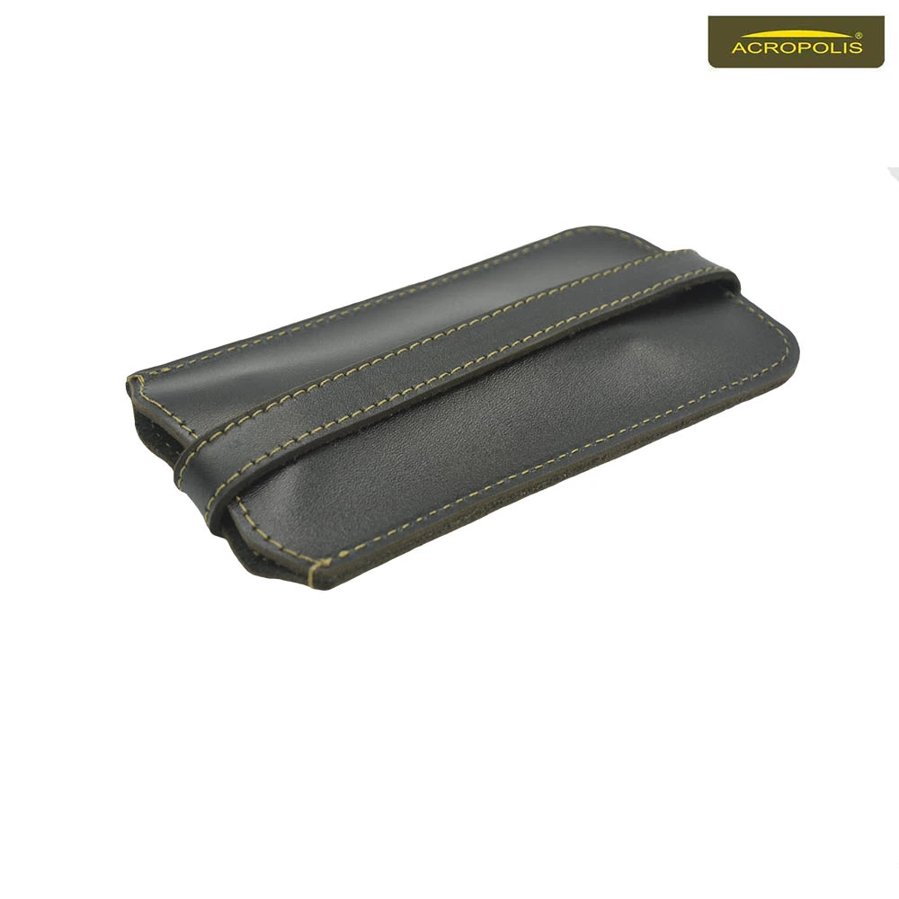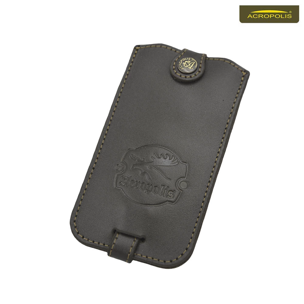 Чохол для ключів Акрополіс КЛ-1 виготовлений з натуральної шкіри, прошитий армованими нитками та оснащений металевою кнопкою і заводним кільцем. Ключі кріпляться до кільця на ремінці та поміщаються в середину футляру. Кнопка надійно фіксує їх в такому положенні.