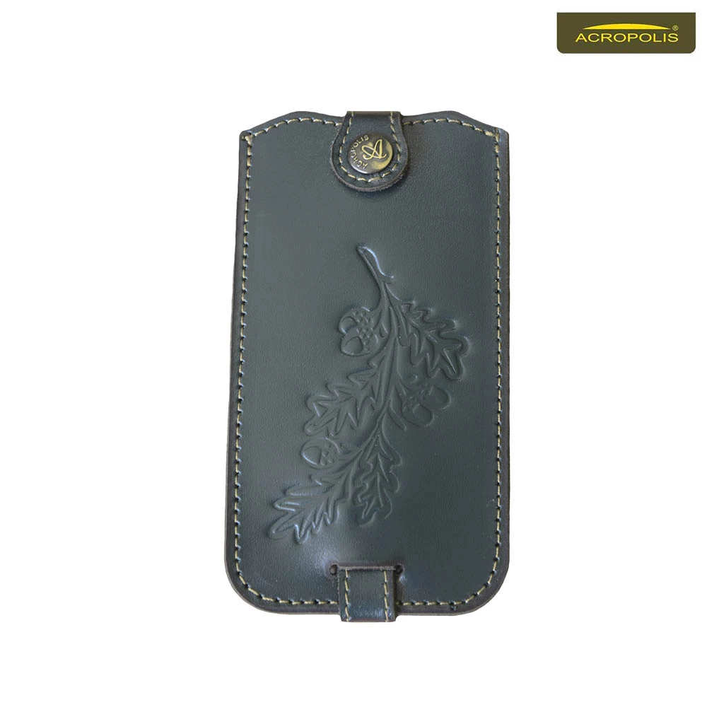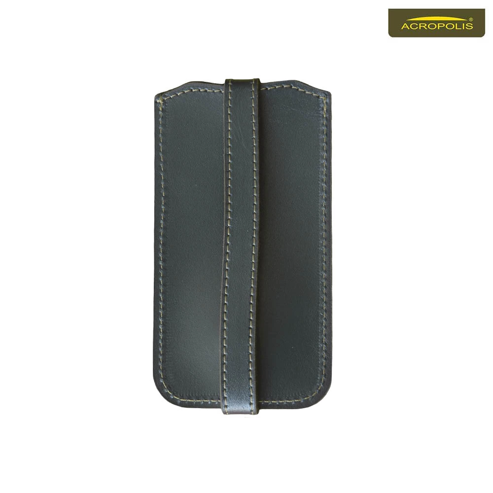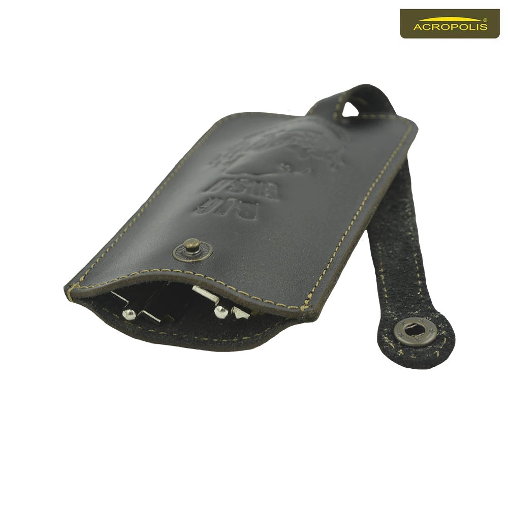 Чохол для ключів Акрополіс КЛ-1 виготовлений з натуральної шкіри, прошитий армованими нитками та оснащений металевою кнопкою і заводним кільцем. Ключі кріпляться до кільця на ремінці та поміщаються в середину футляру. Кнопка надійно фіксує їх в такому положенні.