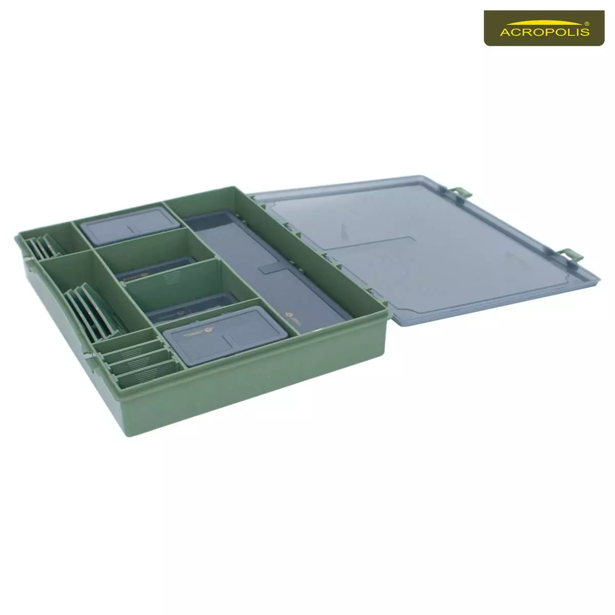 Велика коробка (бокс) спеціально розроблена для карпової риболовлі КБ-1. В даному боксі все продумано до дрібниць, починаючи від розміру пластикової коробки і закінчуючи розміром найменшого відділення.