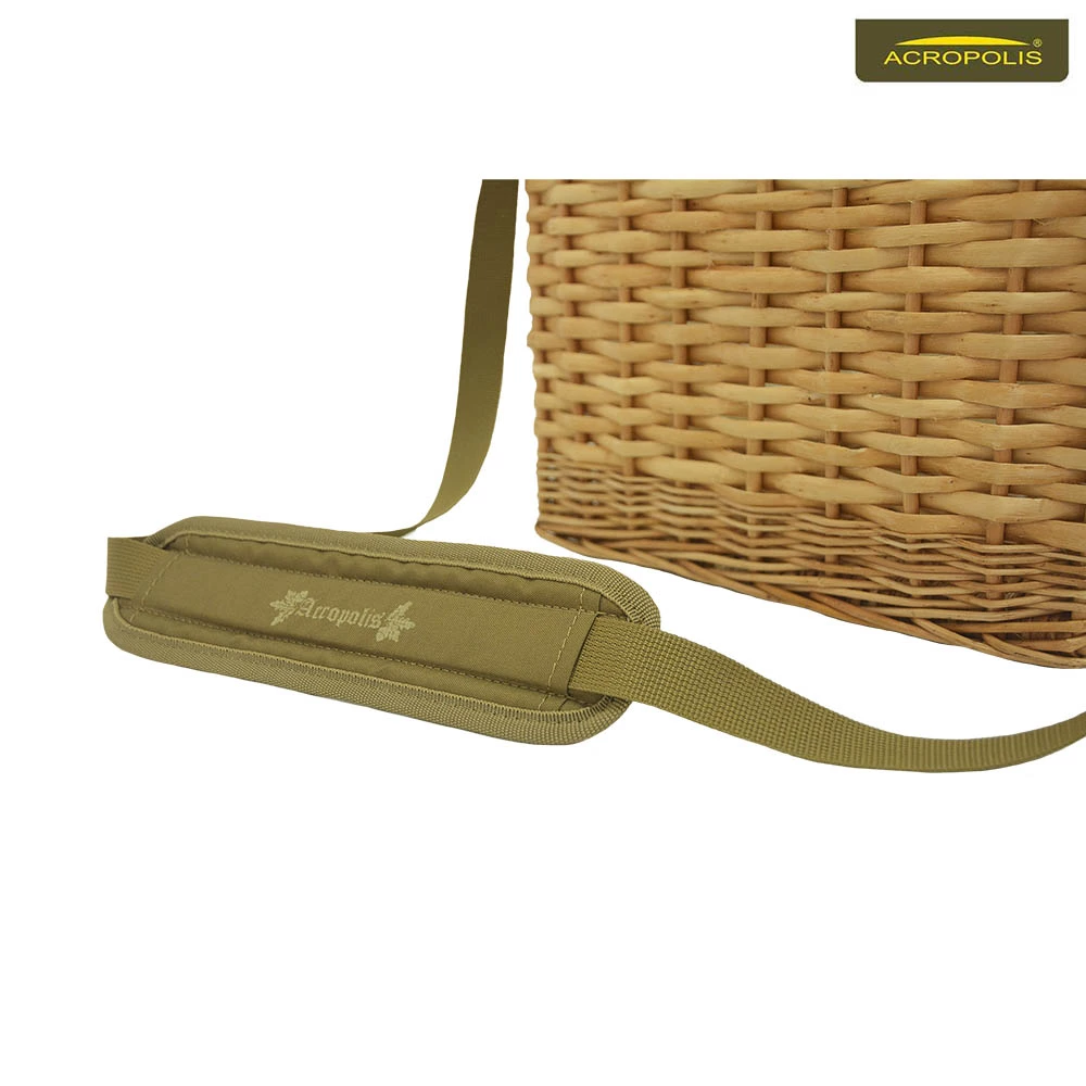 Плечовий ремінь оснащений м’яким широким наплічником, прогумованим з внутрішньої сторони. Він добре тримається і не ковзає, коли кошик пустий, та не натирає, в разі коли він повний. Корзинка зручно висить у вас з боку під час «тихого полювання».