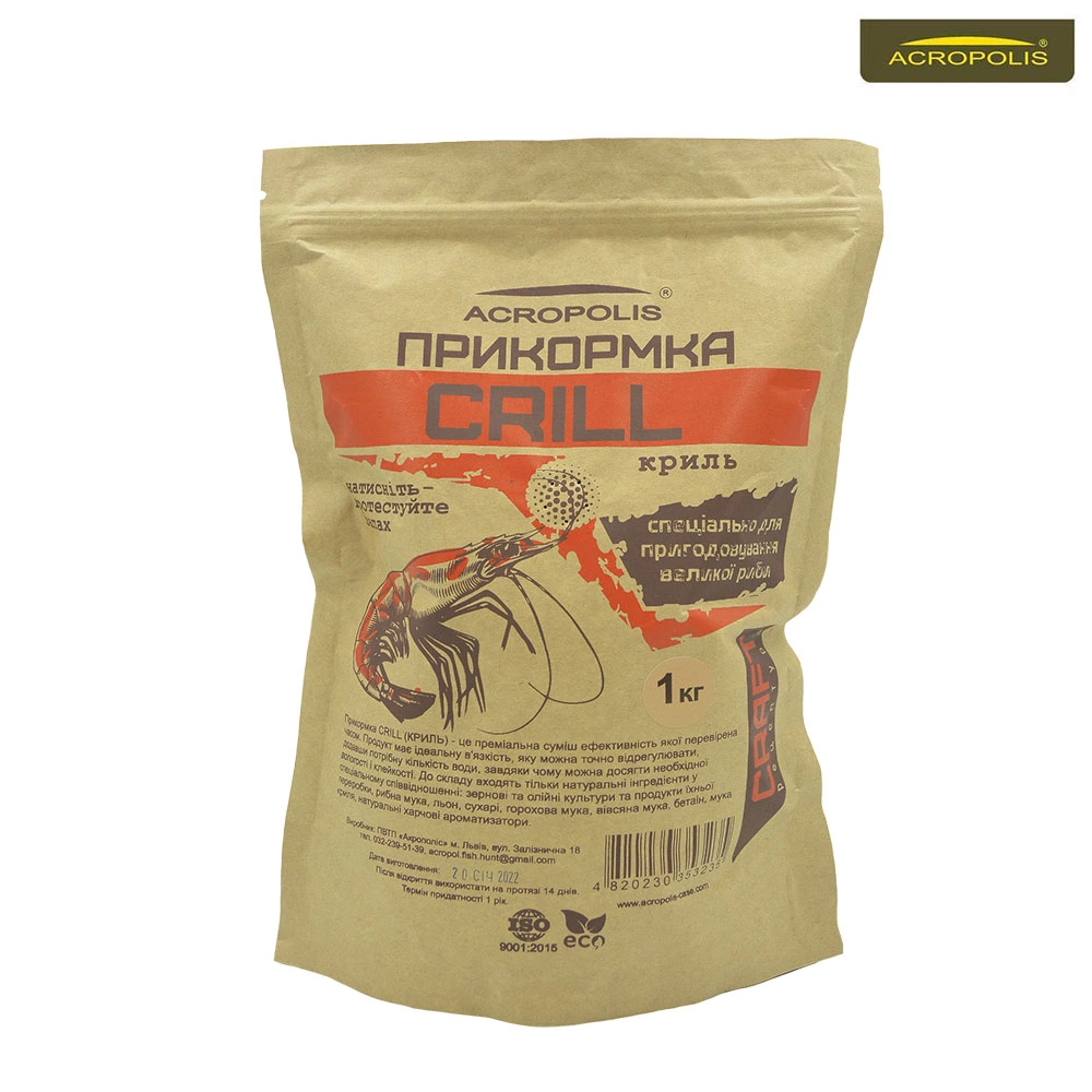 Прикормка KRILL (КРИЛЬ) – це преміальна суміш для пригодовування великої риби, ефективність якої перевірена часом. Продукт має ідеальну в’язкість, яку можна точно відрегулювати. Додавши потрібну кількість води, ви досягнете необхідної вологості і клейкості.