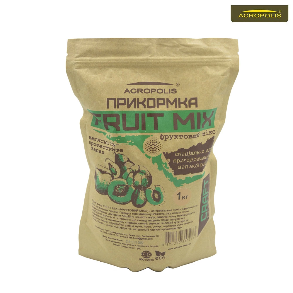 Прикормка FRUIT MIX (ФРУКТОВИЙ МІКС) – це преміальна суміш для пригодовування великої риби, ефективність якої перевірена часом. Продукт має ідеальну в’язкість, яку можна точно відрегулювати. Додавши потрібну кількість води, ви досягнете необхідної вологості і клейкості.