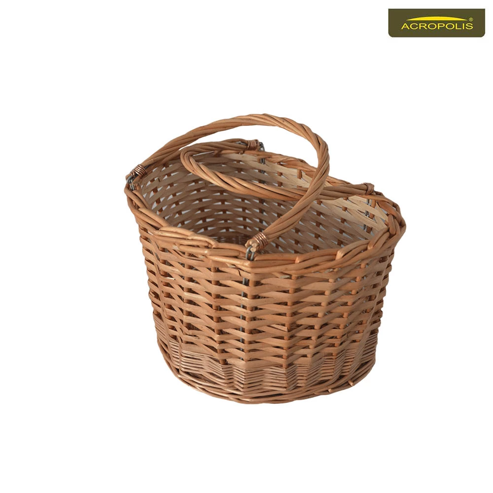 Другий плетений кошик з лози виконаний за аналогічний дизайном. Щоправда, менший за розміром і має дерев’яні ручки. Ви можете збирати гриби в нього, а як тільки кошик наповниться, пересипати їх у більший кошик, який знаходиться у вас за спиною.