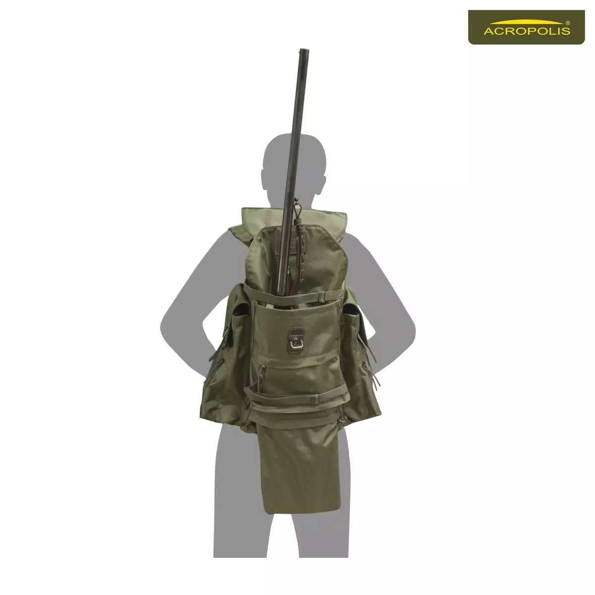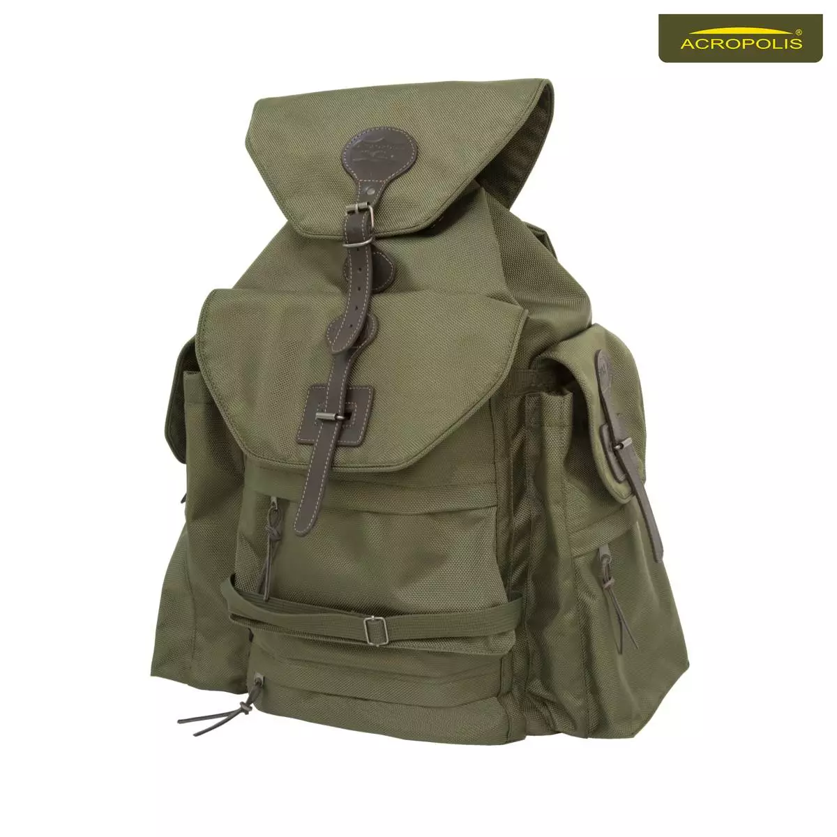 Невеликий рюкзак мисливський Acropolis РМ-1т пошитий з високоміцного поліестеру 1680 ден. Має водовідштовхуюче покриття. Витримує різну температуру. Надійний якісний рюкзак для мисливця, який їде на полювання. Продукти та речі складають в основний відсік, що стягується шнуром текстильним та закривається на клапан. Допоміжні мисливські аксесуари розміщають по бічних кишенях.