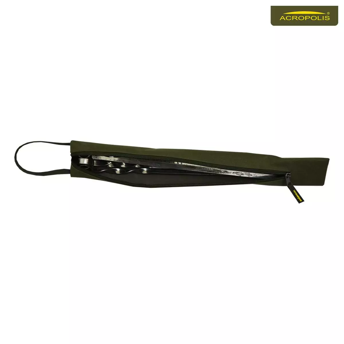 Шампури з мангалом в чохлі НШ-1 від компанії "Акрополіс" зроблені з нержавіючої сталі. Чохол виконаний з водовідштовхуючого брезенту та укріплений у нижній частині для контакту з гострими краями шампурів. В наборі 6 шт шампурів.