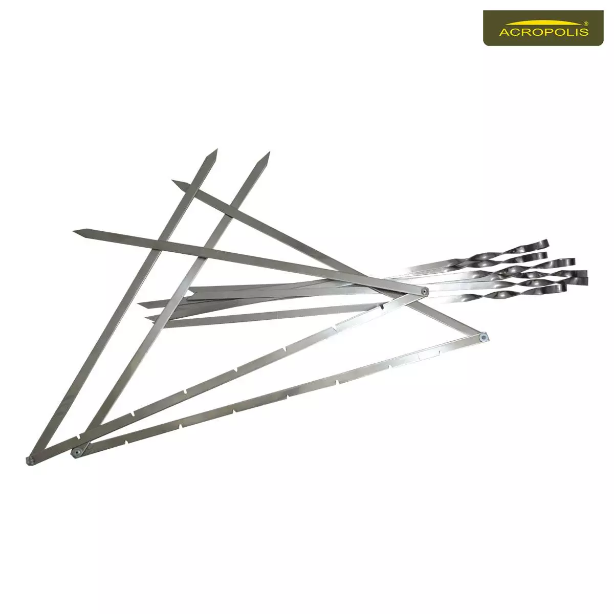 Комплект шампури з мангалом в чохлі Акрополіс НШ-2 складається з 6 штук шампурів і мангалу з нержавіючої сталі. Чохол Acropolis виконаний з водовідштовхувального брезенту та укріплений у нижній частині для контакту з гострими краями шампурів.