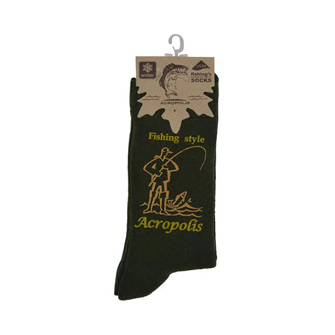 Матеріал: 98% – бавовна, 2% – еластан.Шкарпетки зимові короткі Acropolis ШЗК-1р з рибальським логотипом "fishing style" та стилізованим малюнком на тему "риболовлі". Чоловічі зимові шкарпетки Акрополіс виготовлені з махрової тканини. Якщо на вулиці мороз або дуже "сиро" вони надійно зберігають тепло, підтримуючи оптимальну температуру ступнів, щоб рибак не перемерз. В теплу погоду – поглинають вологу та дають можливість дихати нозі.
