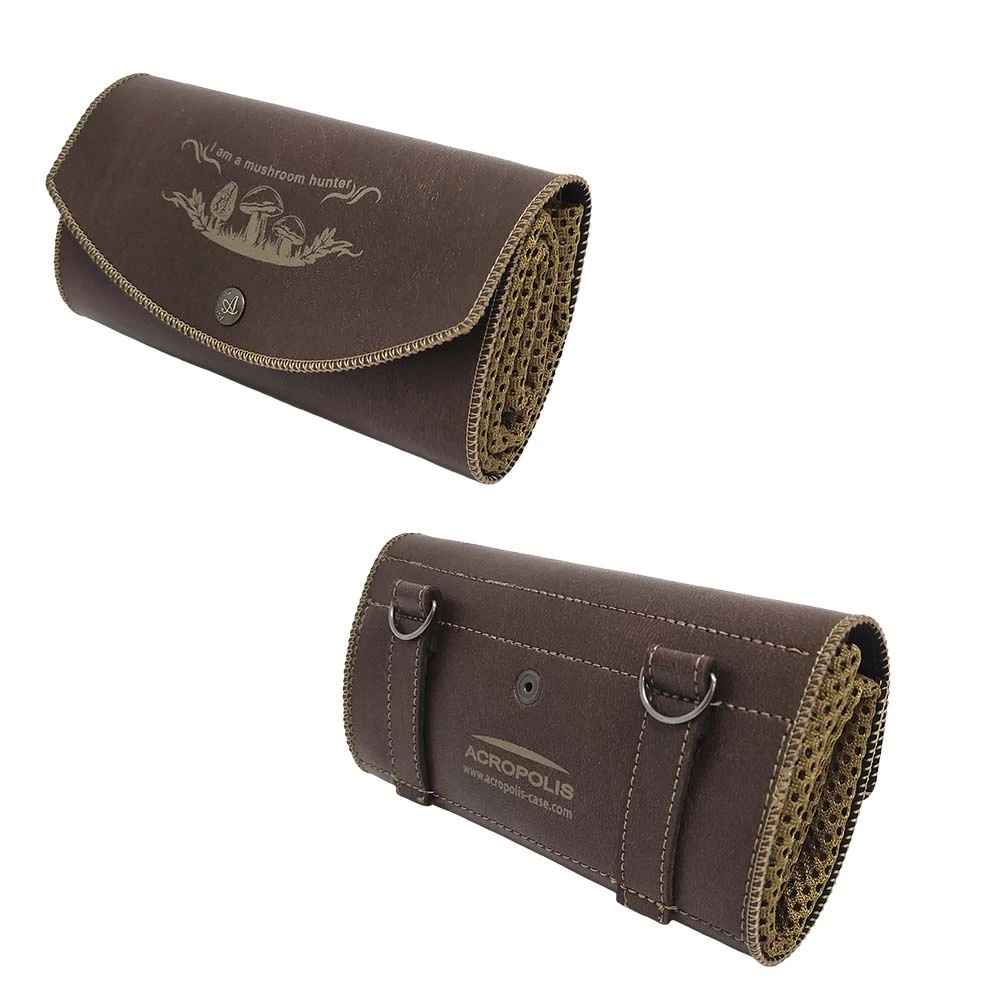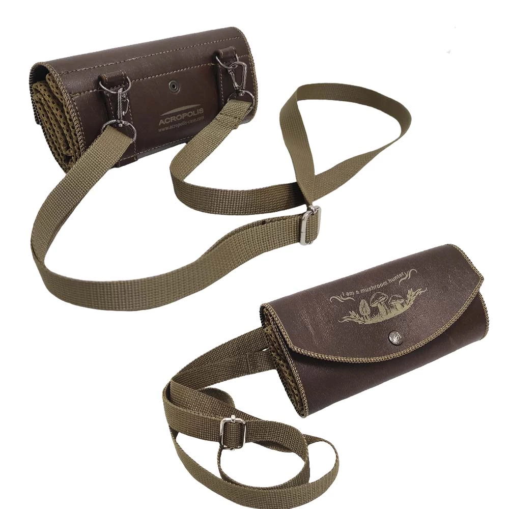 До сітчастої основи пришитий чохол з високоякісної штучної шкіри. Всі сторони чохла оброблені декоративним швом, а зверху нанесено малюнок з грибами та надпис «I am a mushroom hunter».