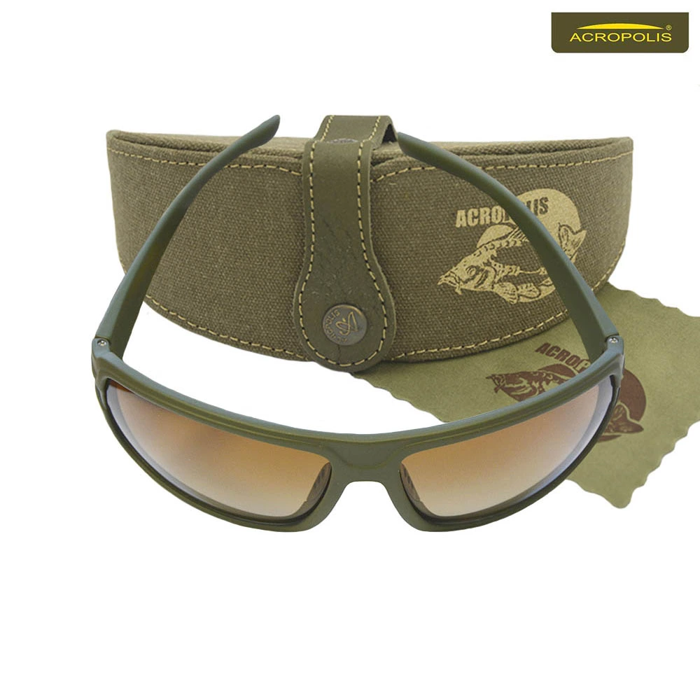 Комплект Acropolis ОФА-4р, крім поляризайіцних окулярів, складається також з жорсткого футляру з зовнішнім малюнком на тему рибалки та серветки з мікрофібри для протирання скелець з тріацетату целюлози від бруду та жирних плям.