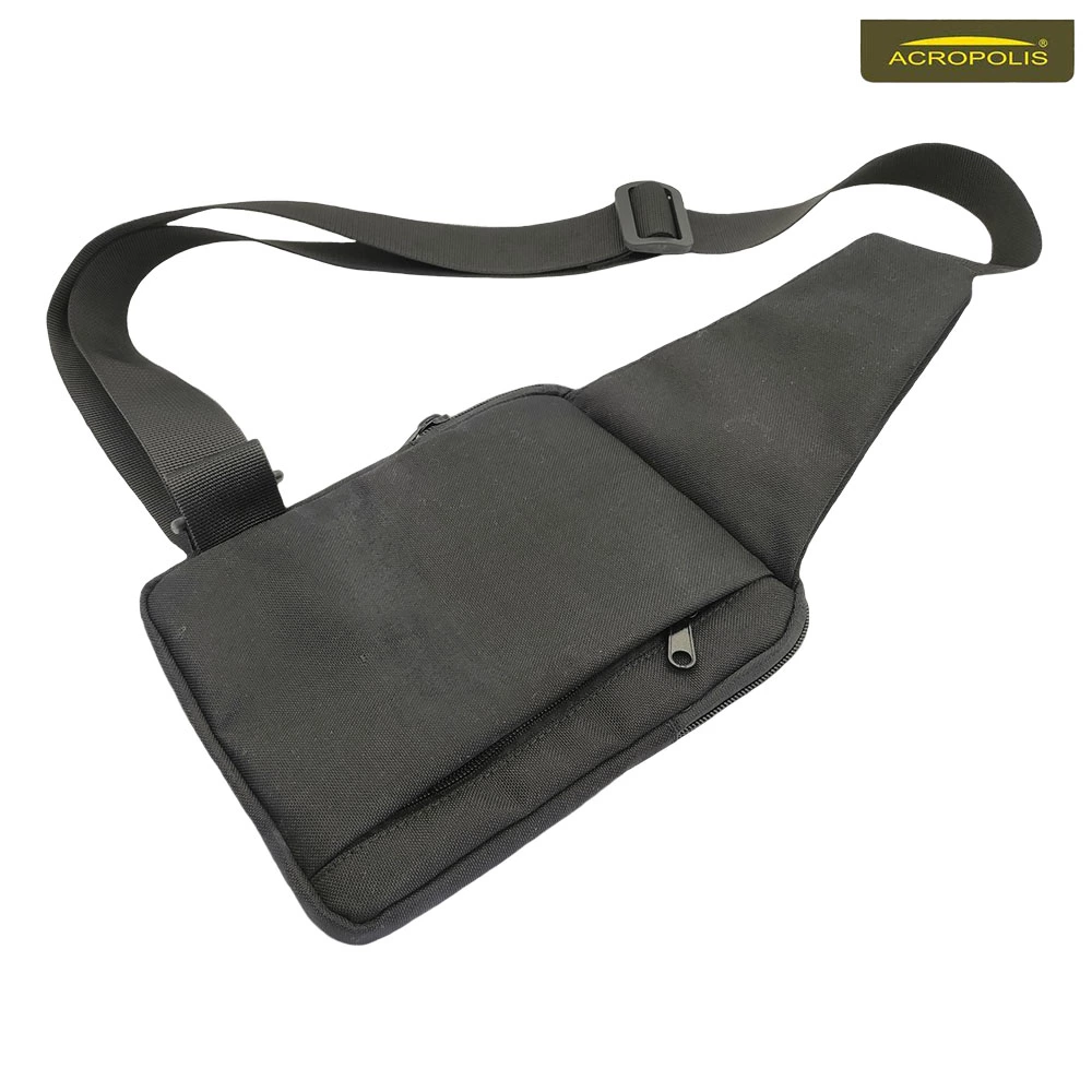 Чоловіча сумка для документів з водостійкого матеріалу чорного кольору. Носять через плече на рівні грудей або живота, щоб потрібні дозволи, і телефон не губилися та завжди були під руками. Завдяки регульованому ременю змінюється висота сумки. Ремінь виготовлений з міцної зносостійкої стропи. Сумка зручна, практична, легко очищається від бруду та не пропускає вологу в середину, що важливо як для паперових документів, так і для електронних гаджетів.