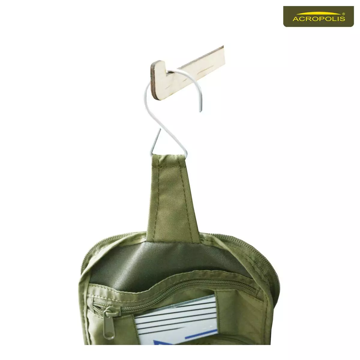 Зверху виробу пришита ручка для транспортування гігієнічної сумки в руках військового. В комплекті також іде спеціальний гачок, щоб сумку можна було підвішати до якоїсь поверхні в польових умовах.