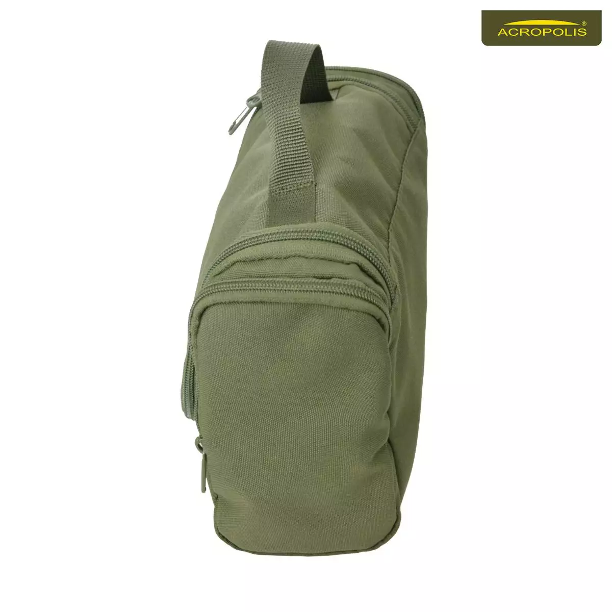 Компактна тактична сумка Акрополіс СГ-2 – це практичний армійський несесер українського виробництва. Призначений для зберігання предметів особистої гігієни та мінімального комплекту повсякденної косметики солдата, піхотинця чи розвідника. Сумка складається з основного та двох допоміжних відділень. Кожне відділення закривається на замок-блискавку. Щоправда, в центрального відділення замок має два бігунця.