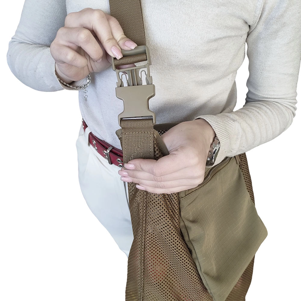 Сучасна «авоська» МГ-1 з широким ременем, який зручно носити як на плечі, так і через плече. Ремінь надійно пришитий та регулюється по довжині за допомогою ударостійкої фурнітури.