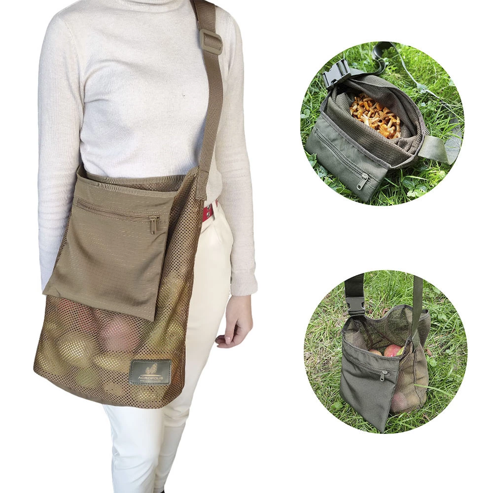 Стильна сумка «авоська» з міцного сітчастого матеріалу та водовідштовхуючого поліестеру для збирання грибів, яблук, груш, походів за покупками та у справах.
