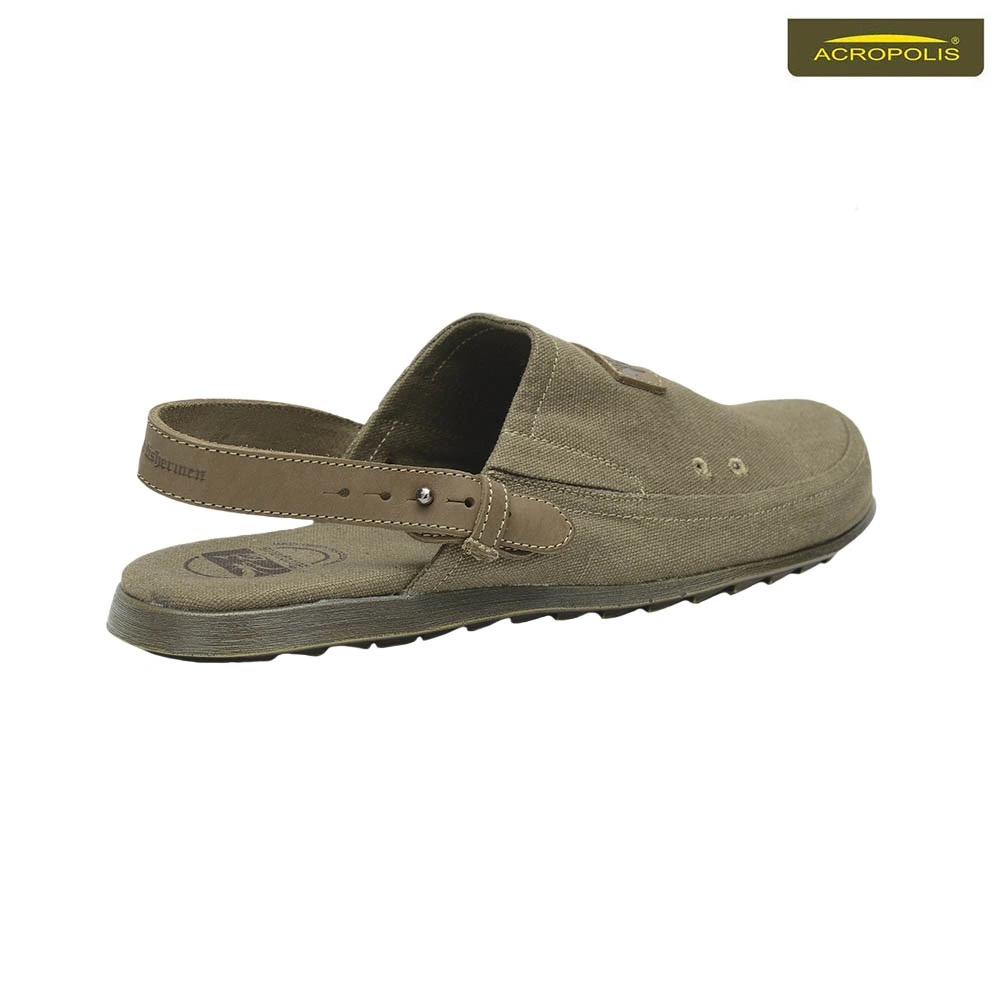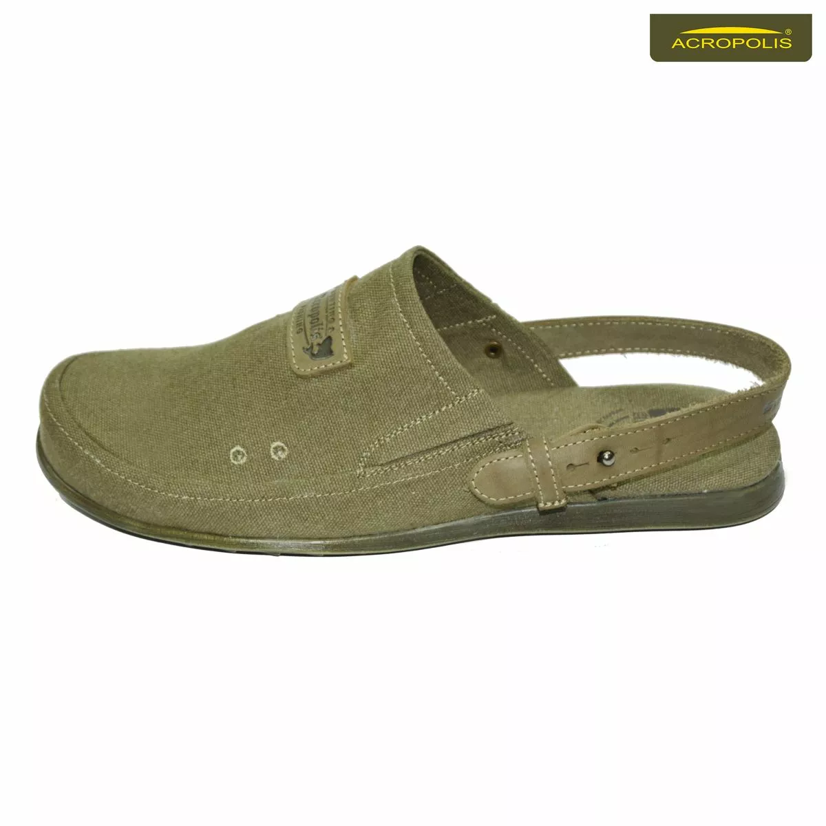 Тапки для рибалки (сабо) ОТМ-1р виготовлені з натурального брезенту. В дизайні виробу використано вставки з натуральної шкіри. Тапки (сабо) мають міцну підошву зі спеціальним протектором, який надає нозі стійкості, а також має хороші показники зчеплення з поверхнею різних типів. Кріплення взуття регулюється відповідно до розміру ноги.