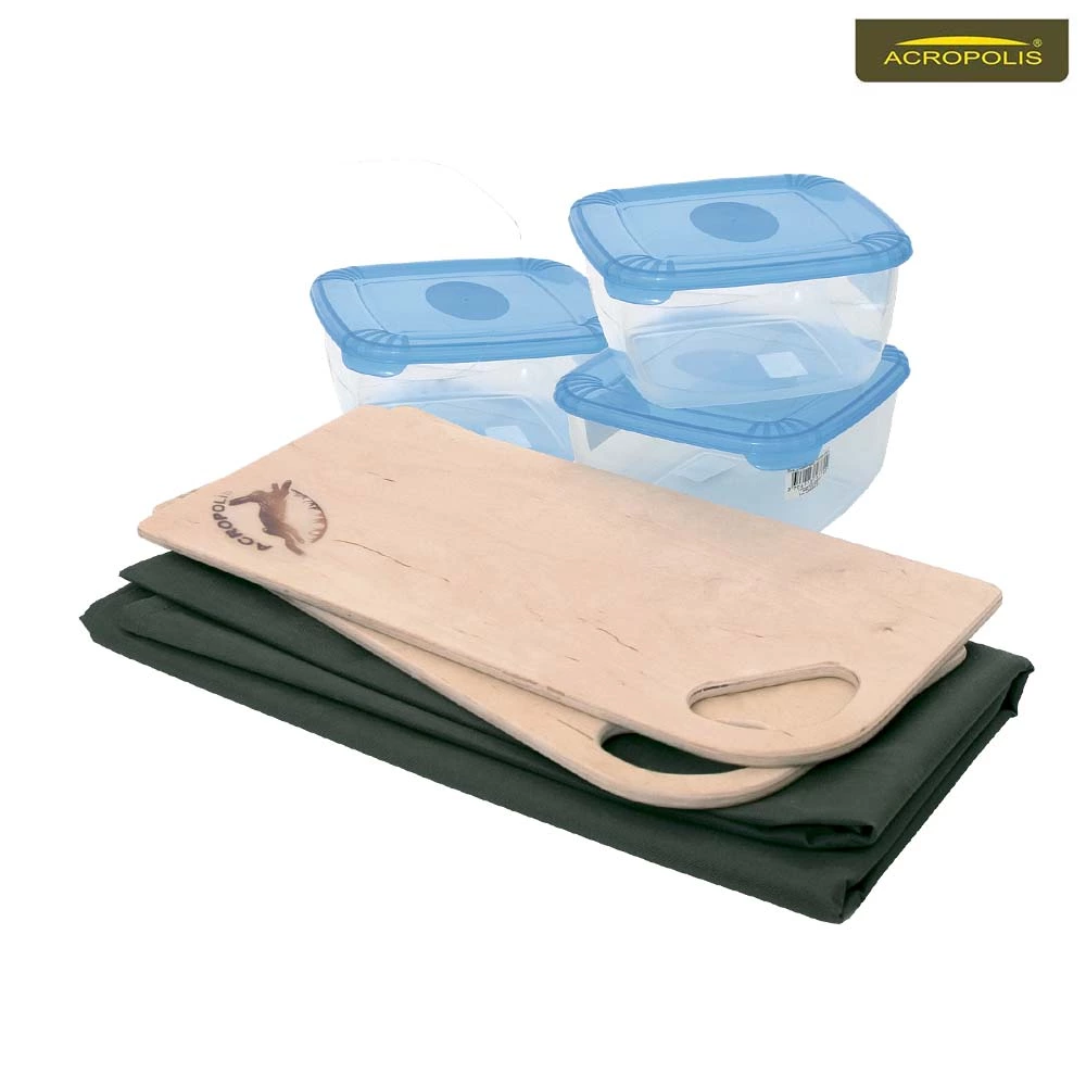 Туристична сумка-холодильник для зберігання і транспортування продуктів і напоїв. Комплектована 4-ма акумуляторами холоду, 3-ма коробками місткістю 2,5 л для харчових продуктів, 2-ма дерев'яними кухонними дошками, скатертиною 200х140см.