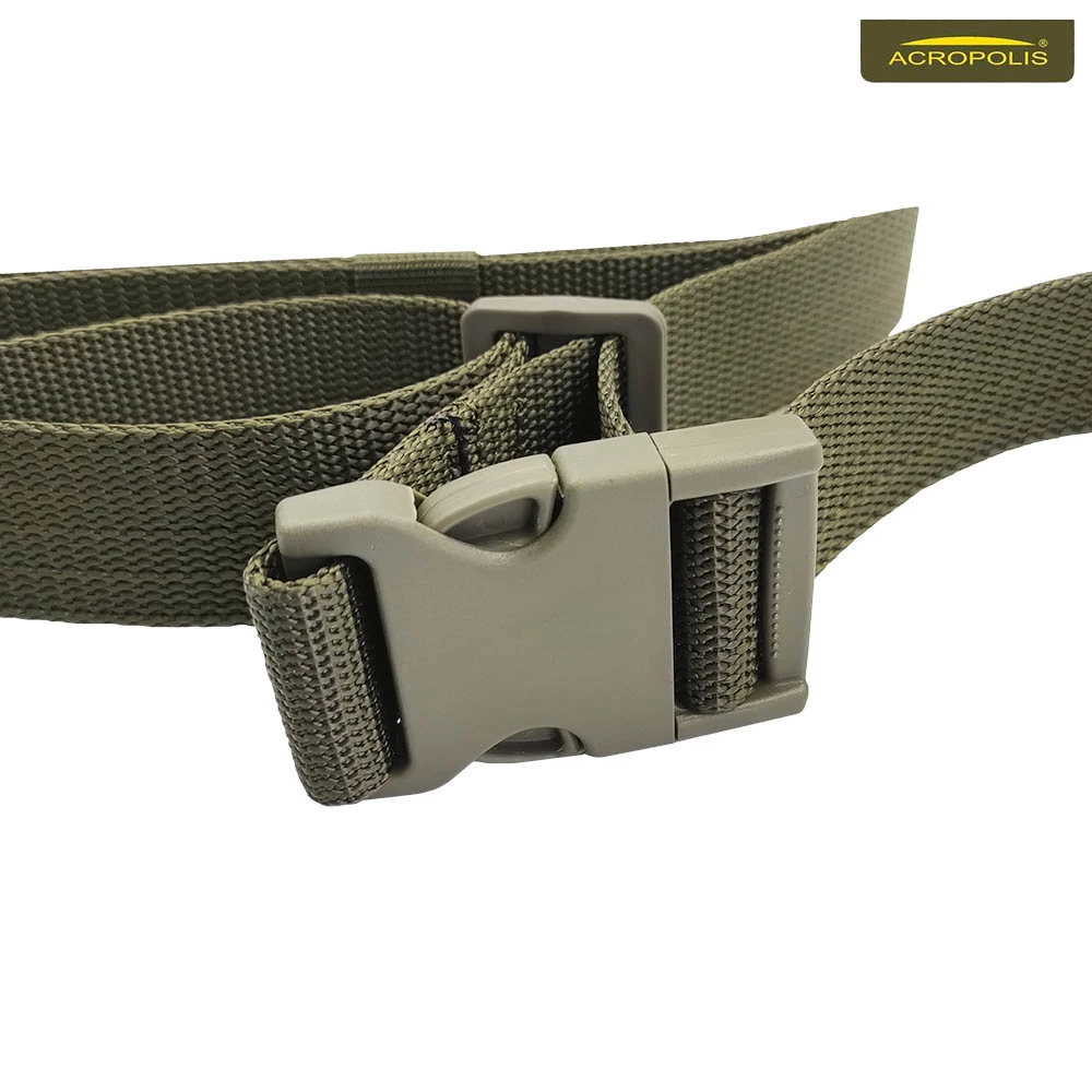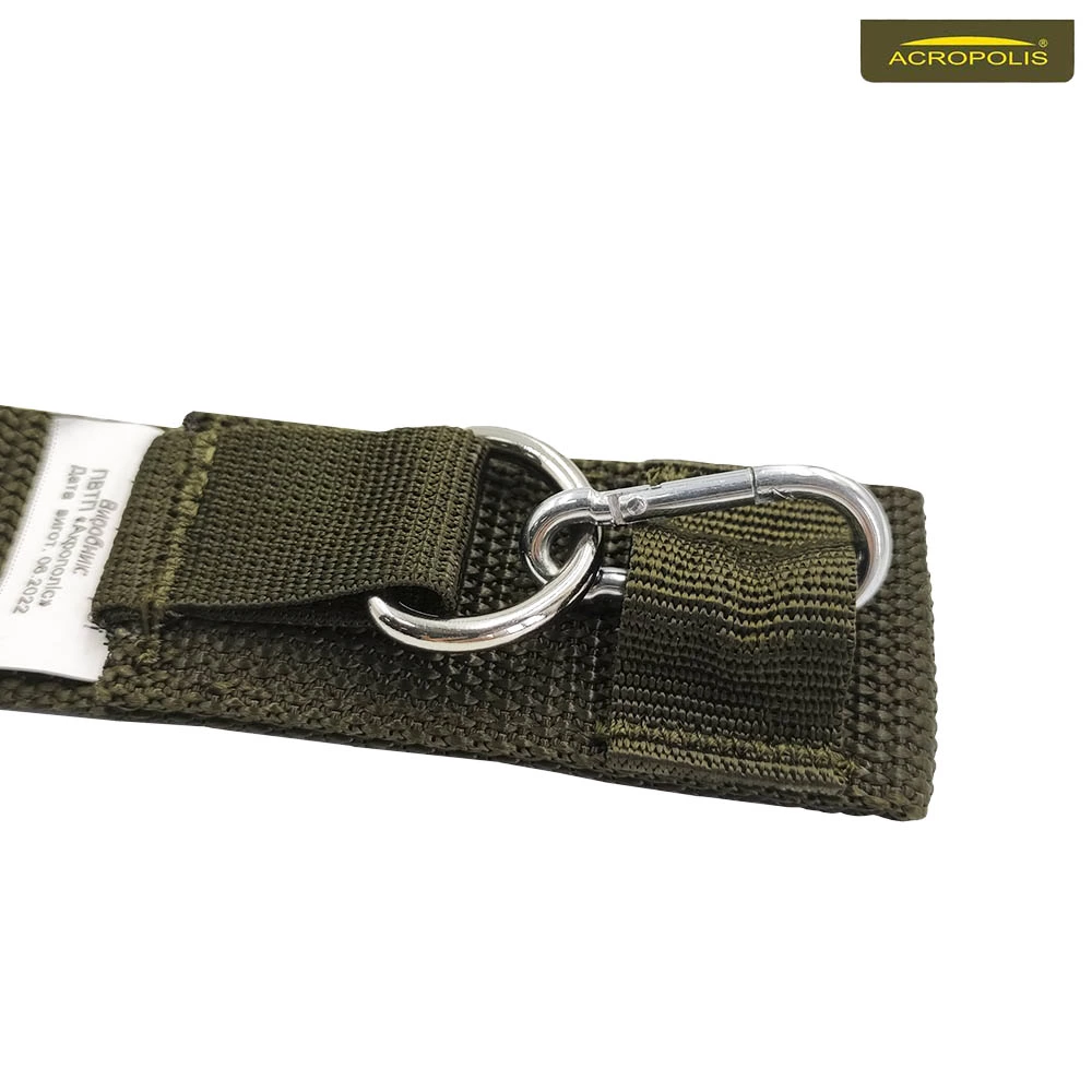 Ремінь зшитий армованою ниткою. Має значний запас по довжині та легко регулюється. Фіксується до АК з однієї сторони металевим карабіном до антабки, а з іншої - текстильним кріпленням до прикладу. В передній частині вшитий великий фастекс, завдяки якому ремінь можна подовжити та миттєво привести зброю в бойове положення.