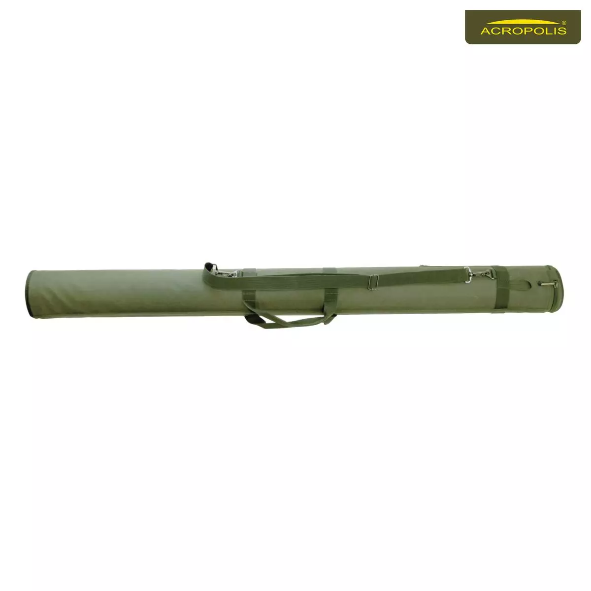 Акрополіс КВ-19 - тубус жорсткий зеленого кольору для зберігання і перенесення делікатних спінінгів і вудлищ довжиною до 120см. Внутрішній об'єм з амортизуючою підкладкою (поролон 2 мм + поліестер). Плечовий ремінь. Дно і кришка виготовлені з міцного водонепроникного матеріалу ЕВА.