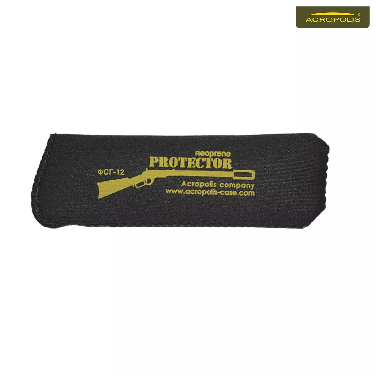Захисний ковпачок з неопрену для ствола гладкоствольної зброї (12 калібр) - Акрополіс ФСГ-12. Це дає можливість створити "бандажний" ефект. Крім того, неопрен володіє амортизаційними властивостями. Призначений для захисту каналу ствола від потрапляння всередину сторонніх предметів (пилу, вологи, листя та гілок, бруду) при транспортуванні.